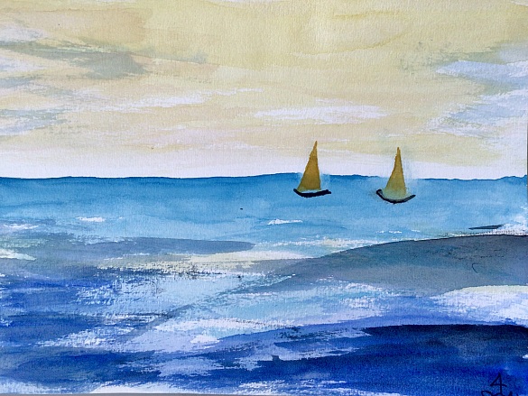 Weiterhin setzten sich die Schüler und Schülerinnen der Erwachsenenschule mit Aquarellmalerei auseinander. Die Technik, Bäume und Wasser zu malen, machte allen großen Spaß. Schöne Beispiele zeigen den Erfolg.